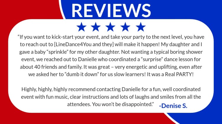 At Linedance4You, we bring energy, fun, and team building to your private party, corporate event, or group outing —right here in the DC metro area and anywhere in the US!